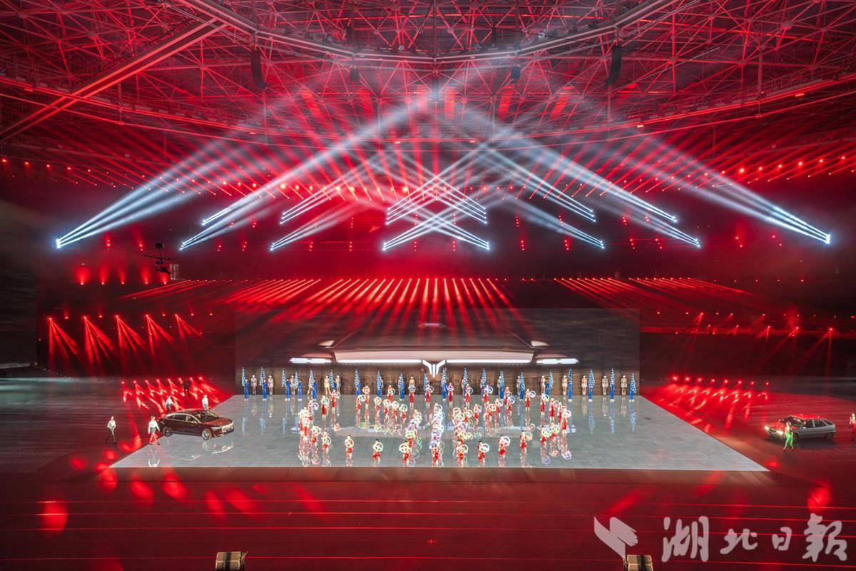 浩浩江水漸進(jìn)、疊變?yōu)闈L滾車流。圓了武漢人“轎車夢(mèng)”的富康轎車、武漢汽車產(chǎn)業(yè)轉(zhuǎn)型升級(jí)的代表作嵐圖追光L駛上舞臺(tái),智能工廠內(nèi)一輛輛新能源汽車接連下線,中國車谷蓬勃發(fā)展的汽車產(chǎn)業(yè)躍然眼前。兩臺(tái)嵐圖FREE+、嵐圖知音載著4名歌手駛上舞臺(tái),演職人員載歌載舞,會(huì)歌《車谷有約》響徹夜空。