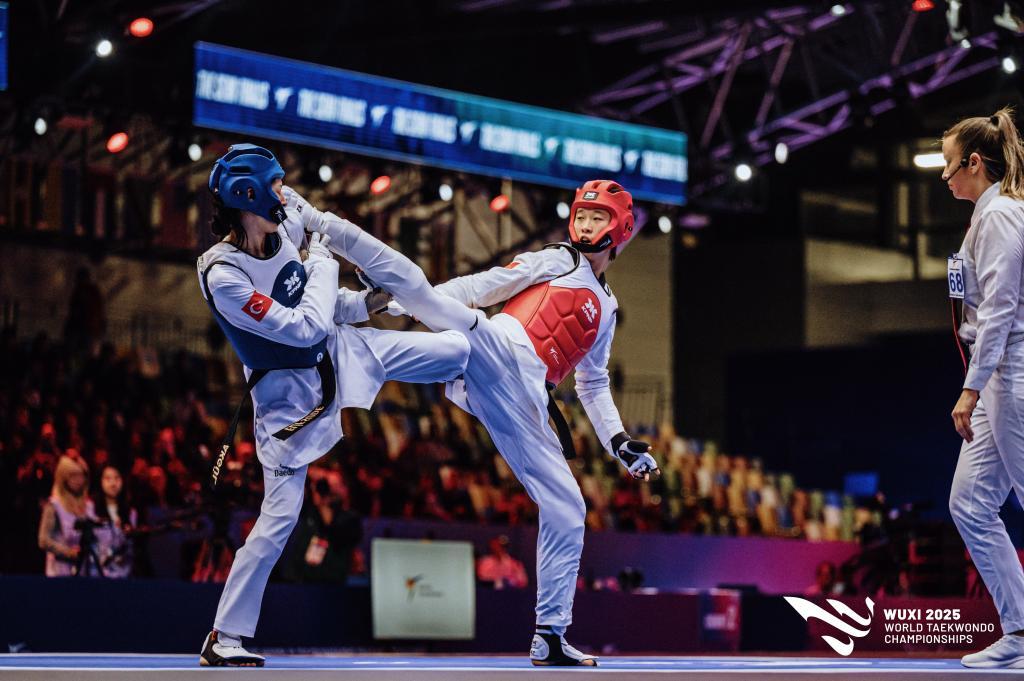在女子49公斤級半決賽中,新科全運會冠軍、2006年出生的傅曉璐迎戰土耳其選手阿克古爾。首局傅曉璐以4:0領先,但對手依靠高位得分追平,并憑借高分值動作優勢先下一局。第二局,傅曉璐在中段連續得分并用一記下劈命中頭部,以8:0扳平局分。決勝局,傅曉璐率先占據優勢,但被對手高位擊頭反超,最終以4:7落敗,大比分1:2止步半決賽,獲得銅牌。