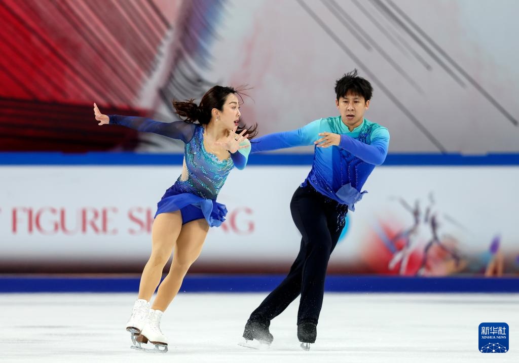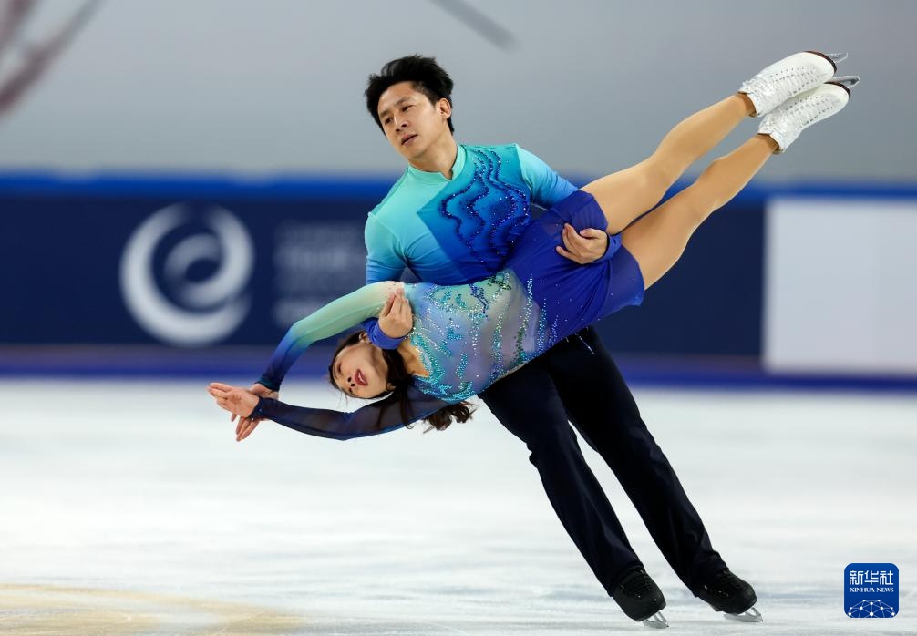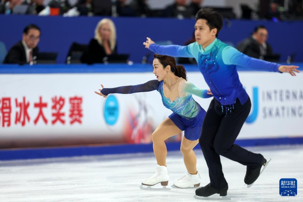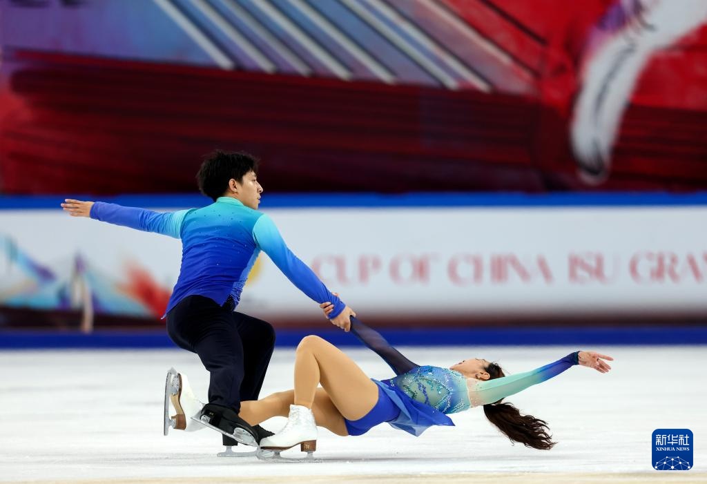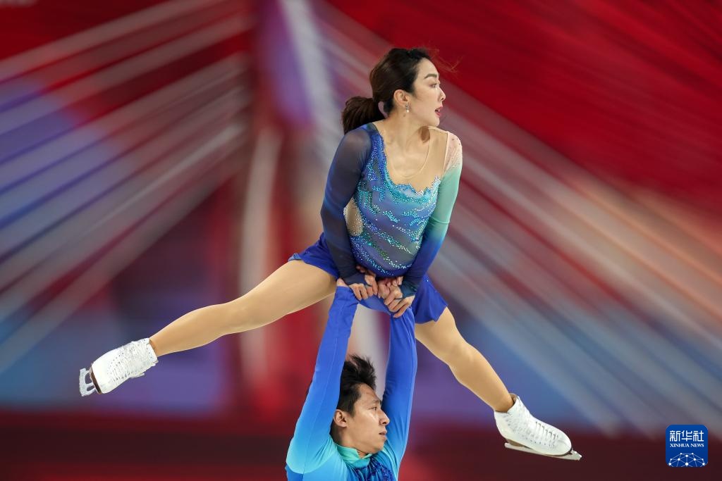 10月25日,隋文靜(下)/韓聰在自由滑比賽中。