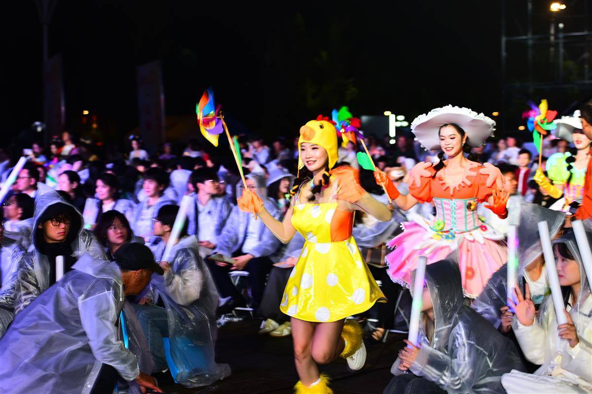 10月16日晚,在黃石慈湖未蘇灣舉辦的“知音湖北·超級文旅日17遇金秋”活動主會場,演員們與觀眾熱情互動。(黃石市文旅局供圖)
