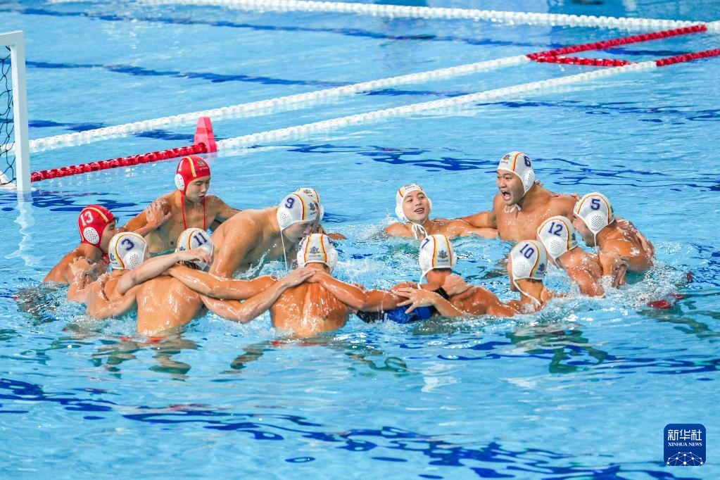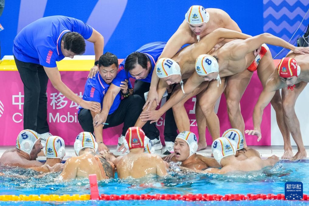 10月25日,四川隊成員在池邊慶祝球隊得分。