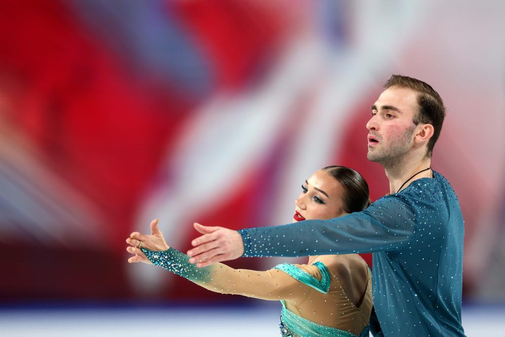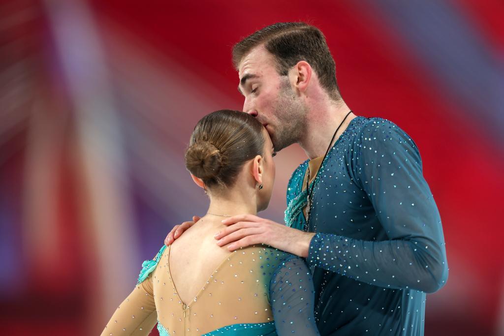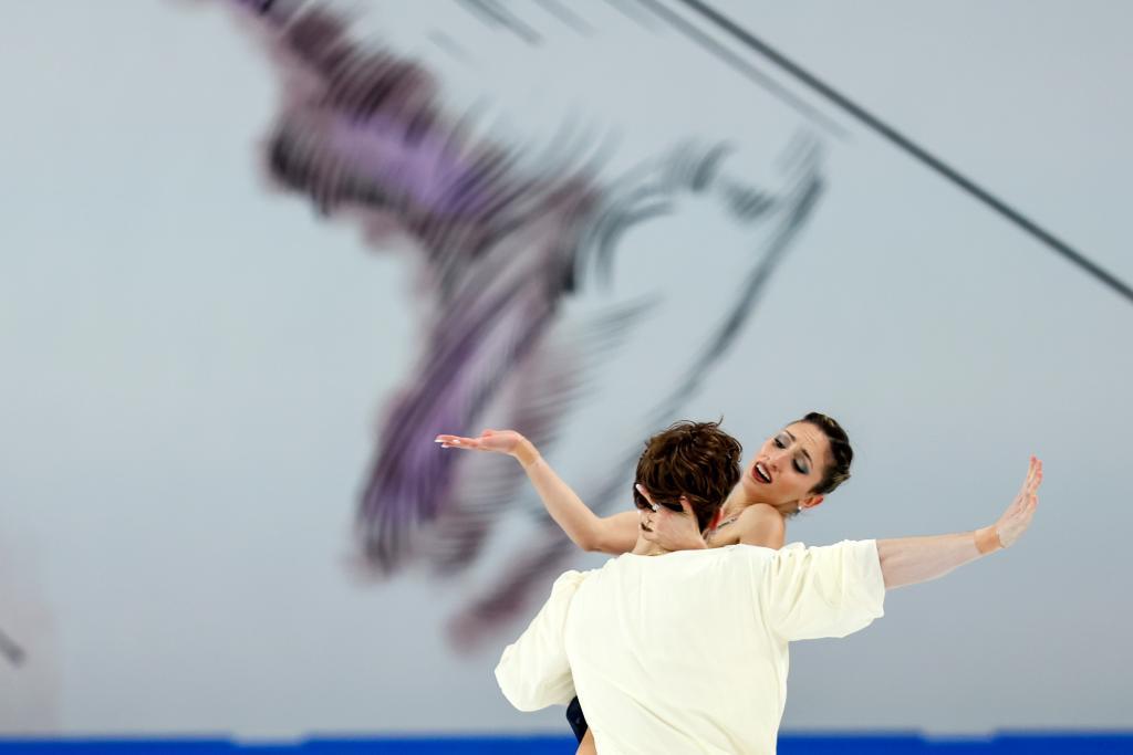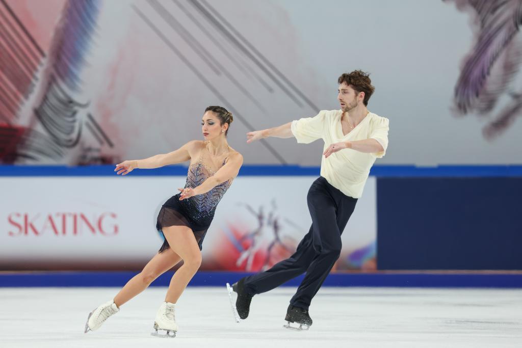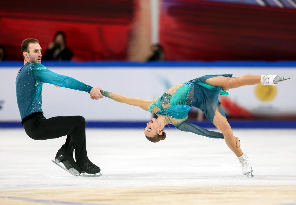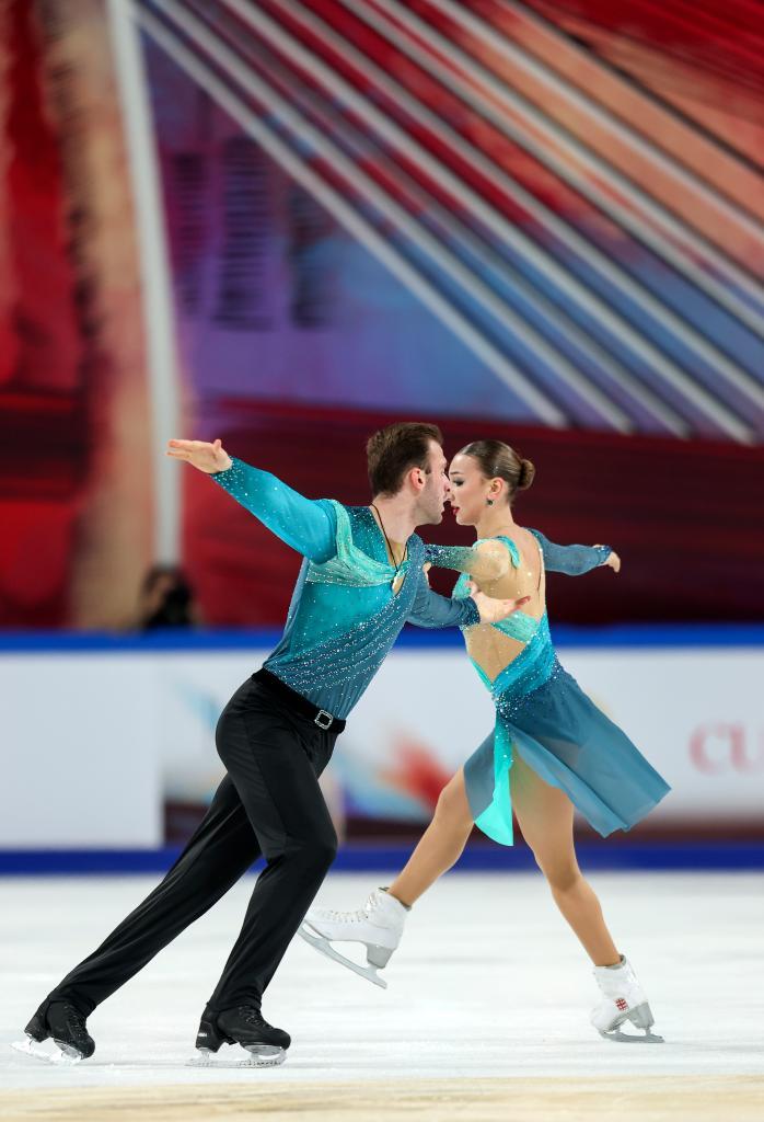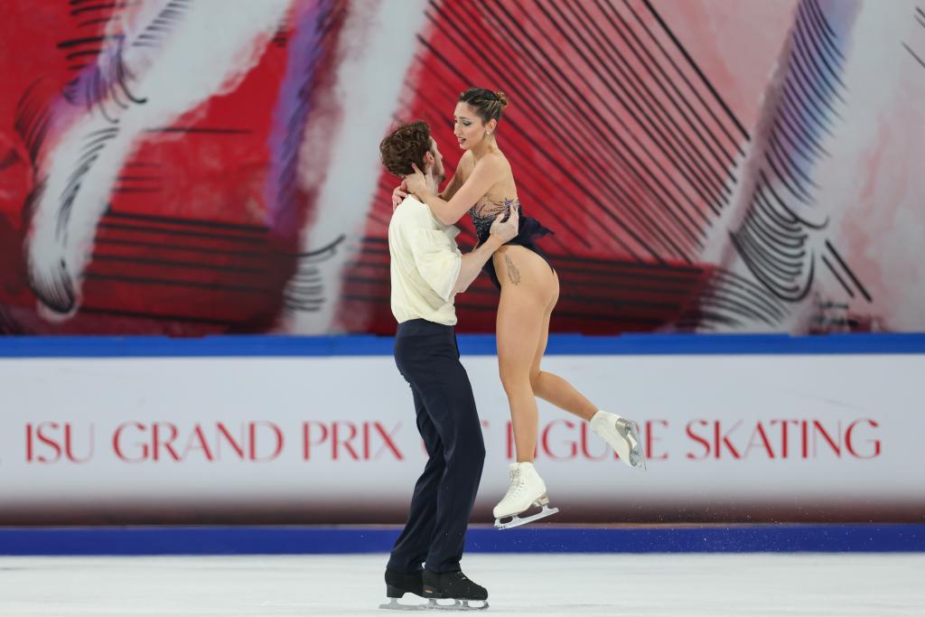 10月25日,意大利組合薩拉·孔蒂(右)/尼科洛·馬西在自由滑比賽中。最終,他們奪得雙人滑比賽亞軍。