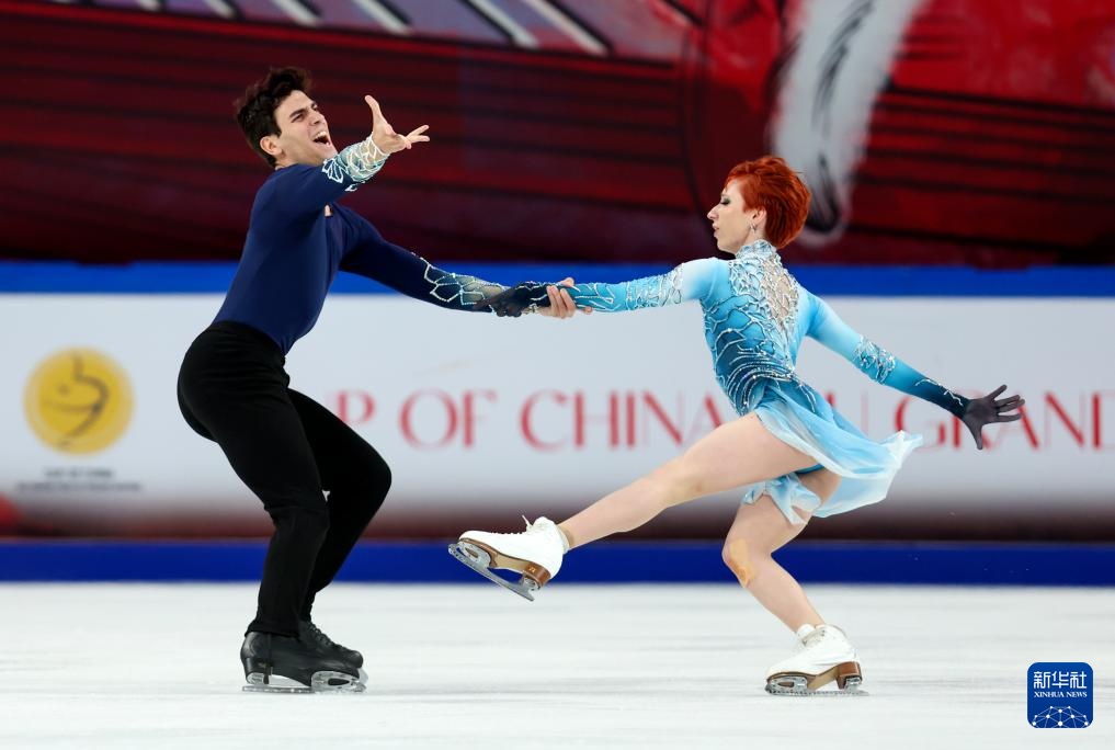 10月25日,中國組合王詩玥(右)/柳鑫宇在比賽中。最終,他們獲得冰上舞蹈第七名。
