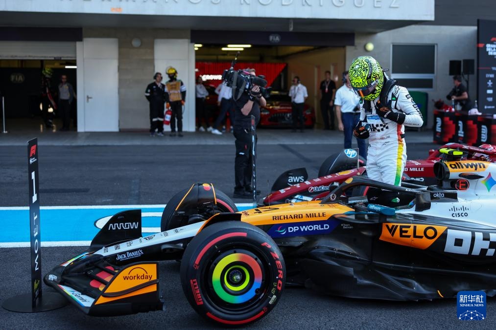 10月25日,邁凱倫車隊英國車手諾里斯在比賽后。最終,他奪得桿位。