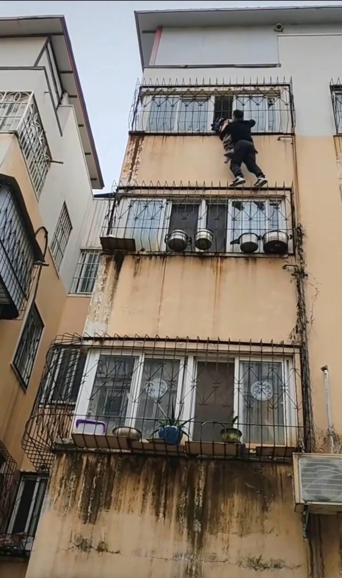 10月26日上午,極目新聞記者輾轉(zhuǎn)聯(lián)系上救人的京東外賣小哥崔玉龍,他說他是開封本地人,今年38歲,25日中午12:50左右,他在大宏世紀(jì)新城送完單準(zhǔn)備出小區(qū),看到有人在樓下拉床單,抬頭發(fā)現(xiàn)一個(gè)小孩掛在四樓防盜網(wǎng)上,小孩媽媽在窗內(nèi)拼命拉住,情況非常危急,雖然有人已報(bào)警,但警察趕來還需要時(shí)間,他觀察了一下,感覺自己能從外墻爬上去,就徒手爬上去了。