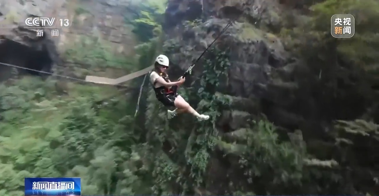 除了用丑萌可愛的物品彰顯個性,旅行“必出片兒”也成為當下很多年輕人表達自我的一種方式。今年暑期開始,貴州開陽縣猴耳天坑景區異?;鸨?。這里是一處典型的巖溶漏斗,直徑約300米,坑深約280米,依托獨特的地質奇觀,當地開發出了蹦極、大秋千、探洞等多種極限運動。而就在如此驚險刺激的體驗之下,也要出片!