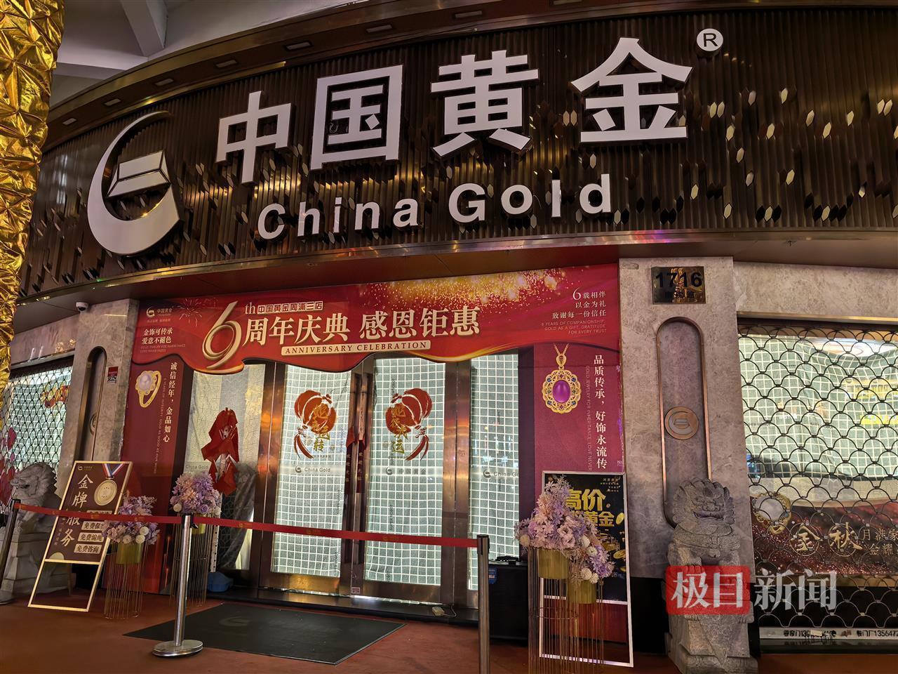 10月26日傍晚6時許,極目新聞記者現場看到,這家“中國黃金”門店大門緊閉,用布簾將玻璃櫥窗全部遮擋,停止對外營業。該門店臨街,位于一處鬧市區的十字路口,附近大約有10家金飾店,其中包括兩家“中國黃金”,所在街區除涉事門店外均正常營業。
