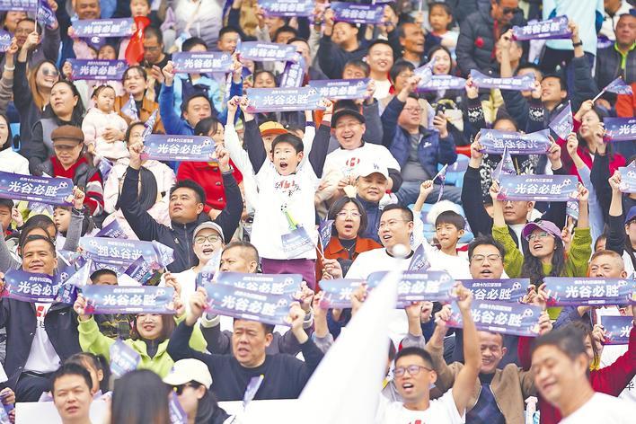 10月26日,武漢市城市足球超級聯(lián)賽(城區(qū)組)現(xiàn)場,觀眾為球員助威。(湖北日報全媒記者 魏錸 攝)