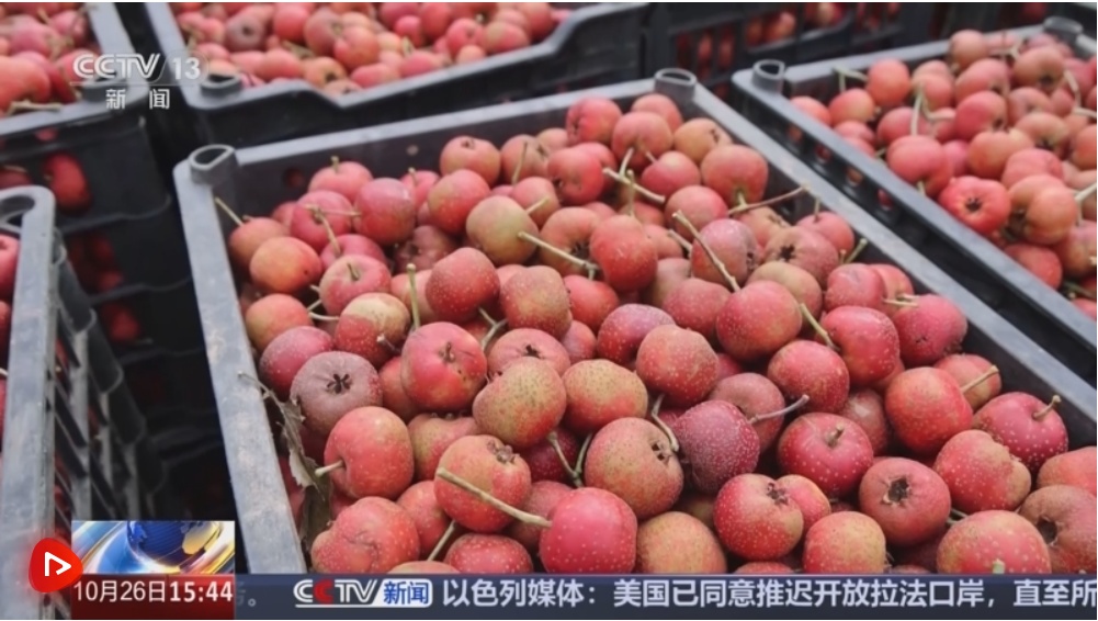 央視網消息:又是一年山楂紅,眼下,河北晉州市的1.3萬畝山楂喜獲豐收,當地果農搶抓農時適時采收,供應市場。