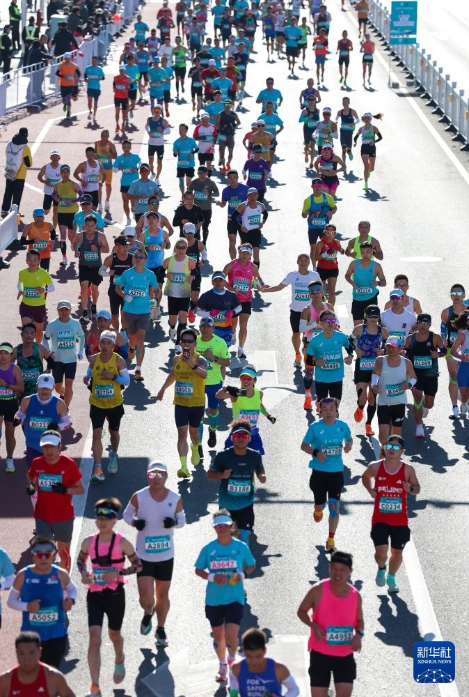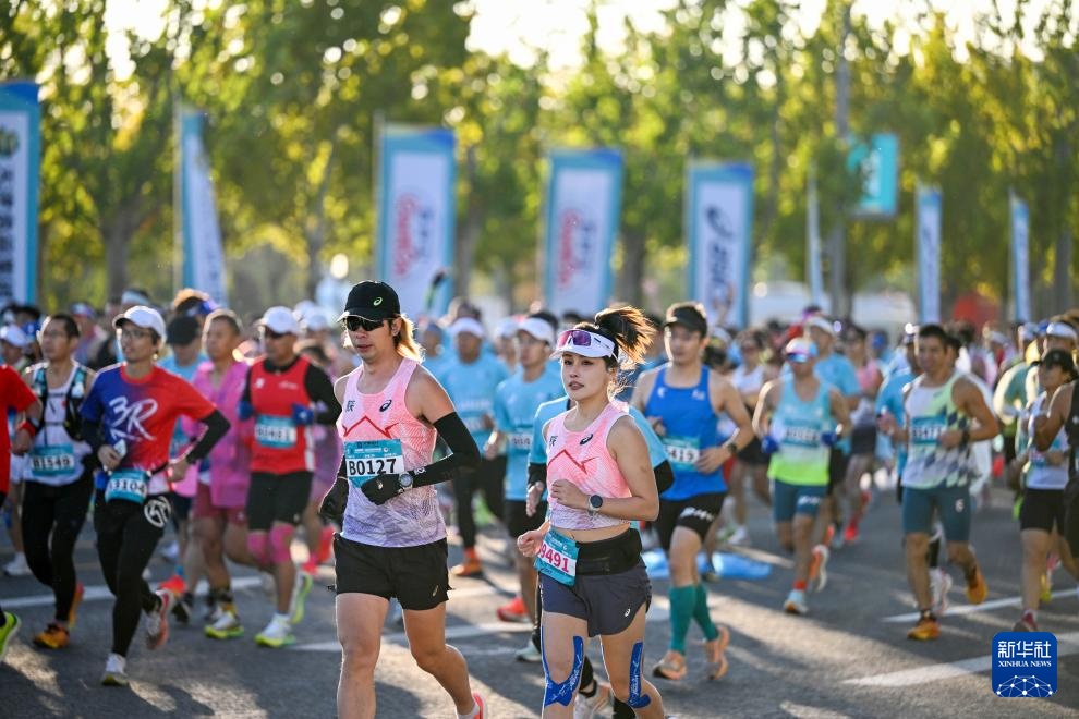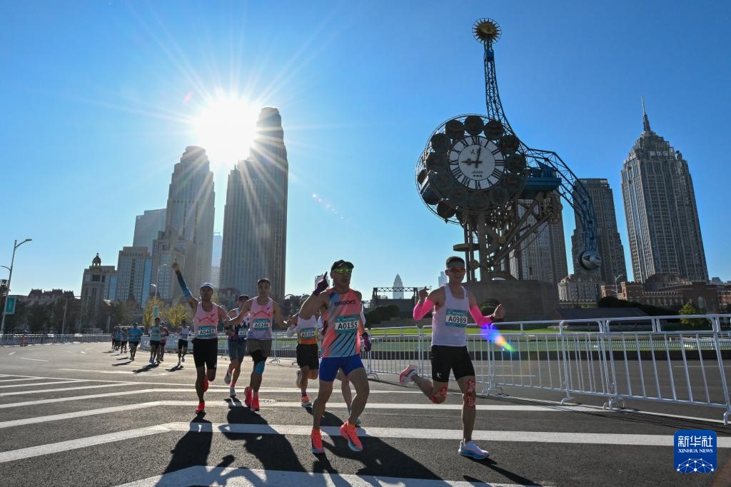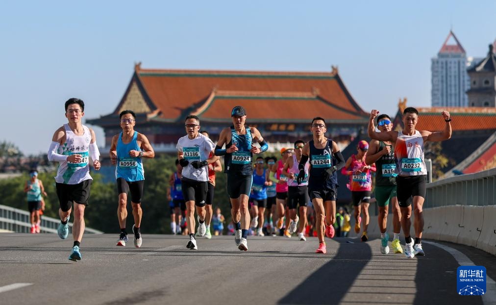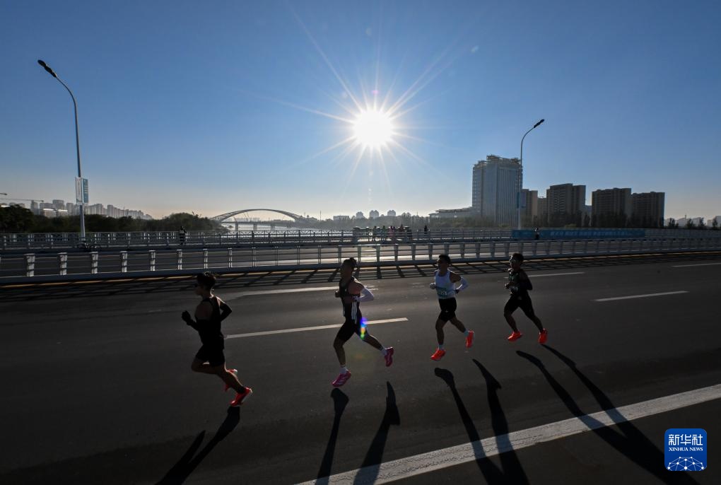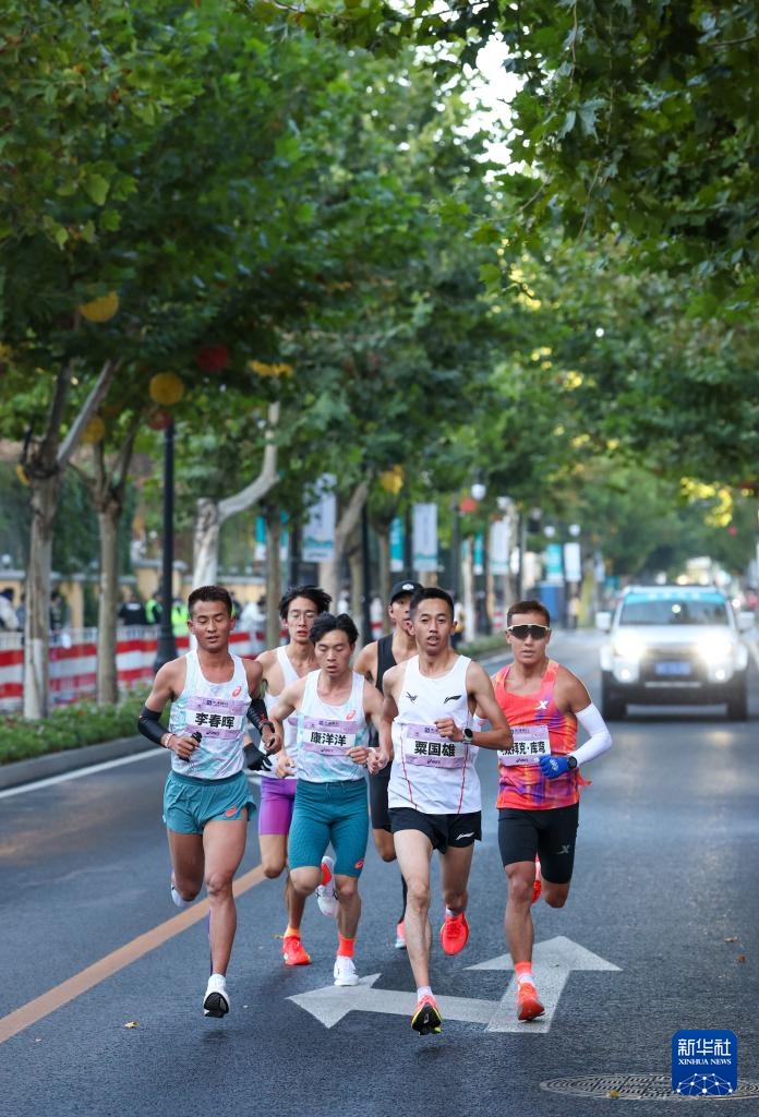 10月26日,參賽選手康洋洋(左三)在比賽中。最終,他以2小時17分06秒的成績獲得男子組冠軍。