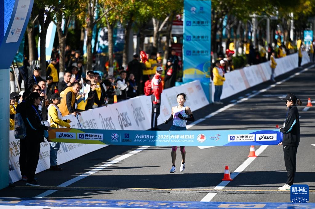 10月26日,參賽選手李芷萱在比賽中跑向終點。最終,她以2小時29分26秒的成績獲得女子組冠軍。