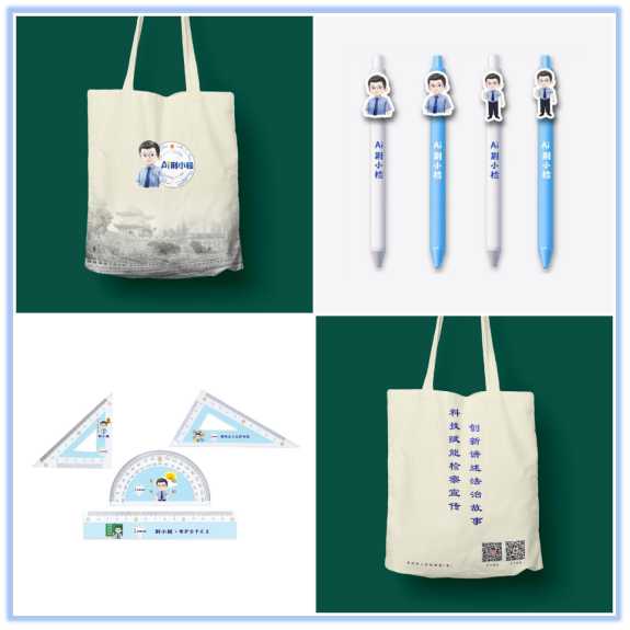 圍繞“荊小檢”開發布袋、套尺、圓珠筆等系列文創產品,用于普法互動,拉近與群眾距離。