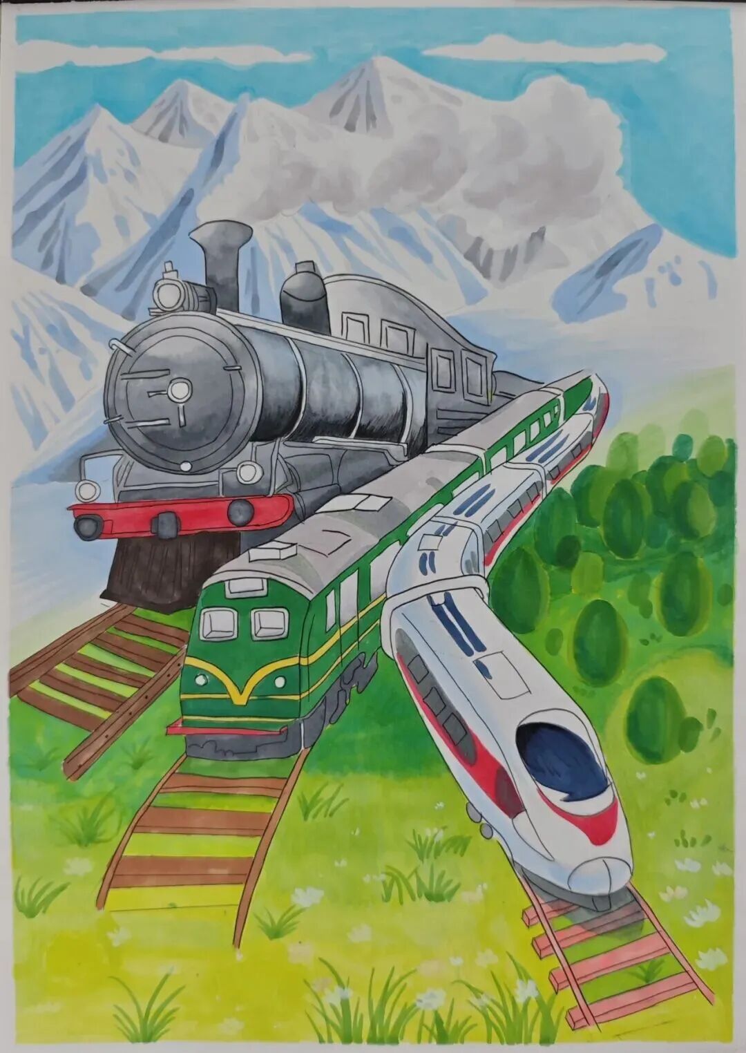 我清晰地記得我每天最快樂的時光便是在電視機前度過的。傍晚六點,我坐在小板凳上,和周圍前來湊熱鬧的叔叔阿姨,一起看著電視機里的世界,那一刻仿佛全世界都住在電視里。我仔細的觀看著畫面閃動的每一幀,生怕自己錯過任何一處細節,猶記得畫面里首先聽到的是刺破天際的鳴笛聲傳來,然后一輛外形猶如田間甘蔗一般的車緩緩駛入眼前。從畫面人物的交談之中才得知這個“甘蔗車”的正規名稱叫“火車”。命運為我鋪展的軌道,蜿蜒走向了從不曾遇見的遠方,原以為我與火車只是匆匆照面的過客,誰知竟成了彼此故事的篇章。