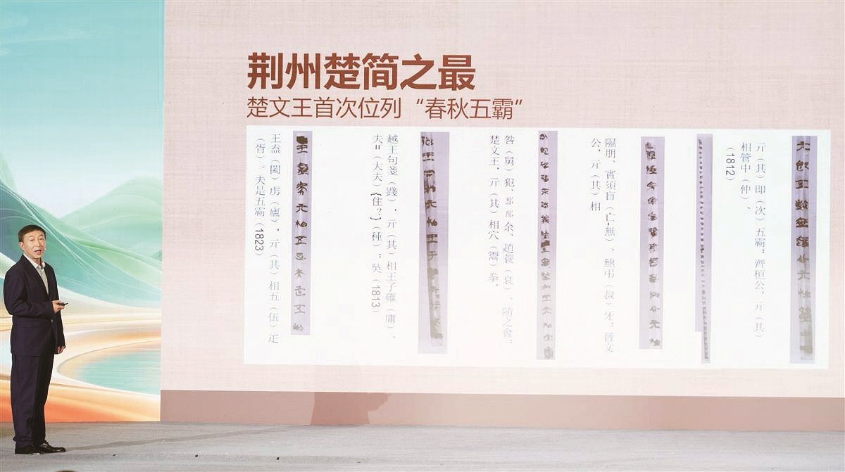 荊州博物館館長楊開勇介紹荊州楚簡之最