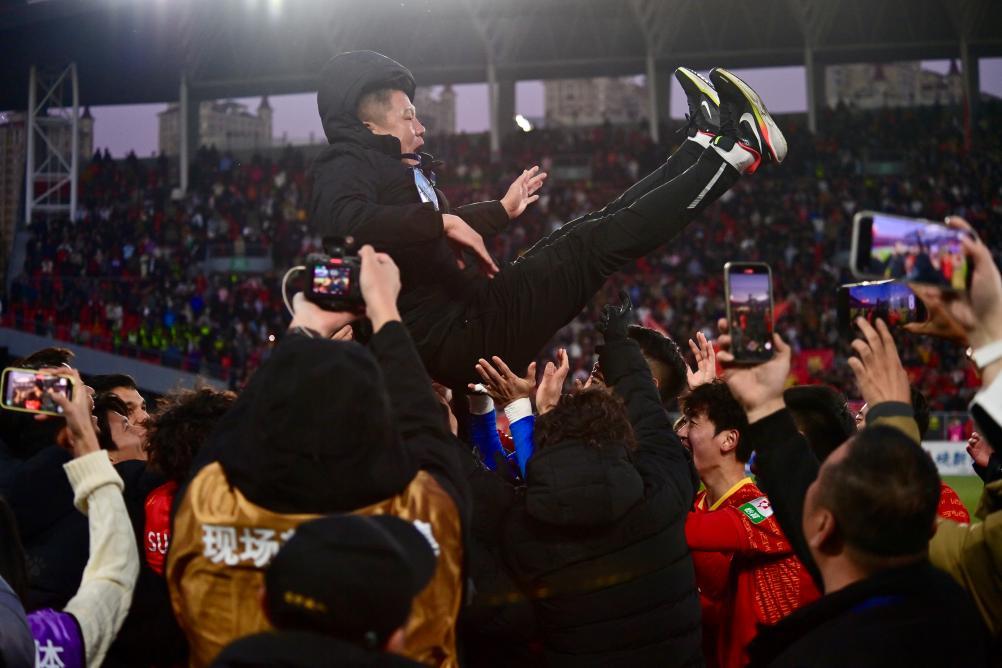 確認結果后,球隊主教練李金羽終于松了一口氣,“行百里者半九十,不到最后一刻都不能放松”。在他看來,球隊沖超成功,穩定的投入、良好的環境和氛圍、優秀的球員缺一不可。