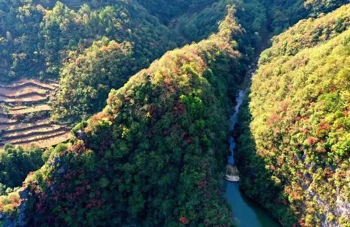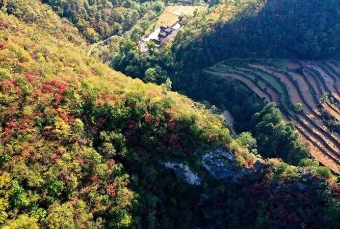 深秋時節,夾馬寨層林盡染,秋色正濃,樹木換上新裝,從翠綠到金黃,從橙黃到火紅,層層遞進,如詩如畫。