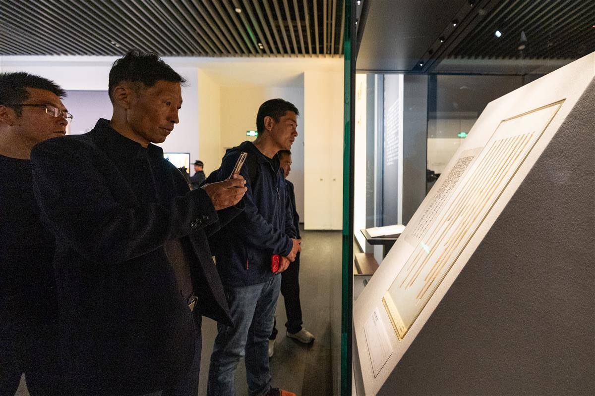 觀眾仔細(xì)欣賞簡(jiǎn)牘展品。