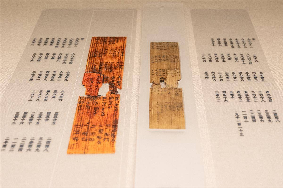 部分展出的簡(jiǎn)牘文物。