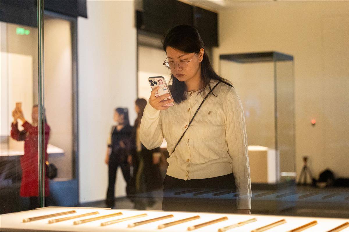 2025年10月28日,湖北省博物館“簡(jiǎn)讀中國(guó)—中國(guó)出土簡(jiǎn)牘展”在南館四樓火熱開(kāi)展,吸引大批市民游客前來(lái)觀展。展覽展出了曾侯乙墓竹簡(jiǎn)、戰(zhàn)國(guó)楚簡(jiǎn)、睡虎地秦簡(jiǎn)、里耶秦簡(jiǎn)、敦煌懸泉漢簡(jiǎn),甚至還有三國(guó)時(shí)期的吳簡(jiǎn)與晉簡(jiǎn)等,堪稱(chēng)年代序列最完整的簡(jiǎn)牘展。(湖北日?qǐng)?bào)全媒記者 何宇欣 攝)