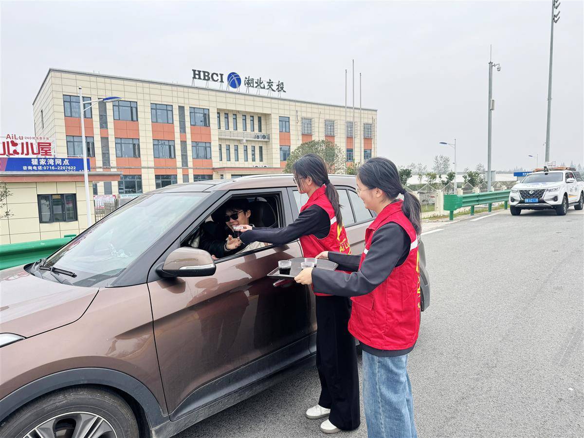 上午,身著紅色馬甲的“愛路-AiLu”志愿者們在收費廣場設置起服務臺,將熱氣騰騰的姜汁可樂一杯杯遞送給過往司乘。“師傅,天冷了,喝杯姜茶暖暖身!”志愿者一邊熱情服務,一邊溫馨提示行車安全。從赤壁駕車前往洪湖的王先生接過飲品后連聲道謝:“開了幾小時車,正覺得涼,這杯熱飲來得太及時了,整個人都暖和了!”