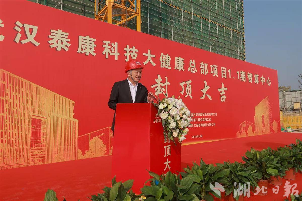 湖北日報訊 (記者楊然、成熔興)10月28日上午,隨著最后一方混凝土澆筑完成,由泰康保險集團投資建設的武漢泰康科技大健康總部項目智算中心在武漢東湖高新區(qū)順利實現(xiàn)主體結構封頂。
