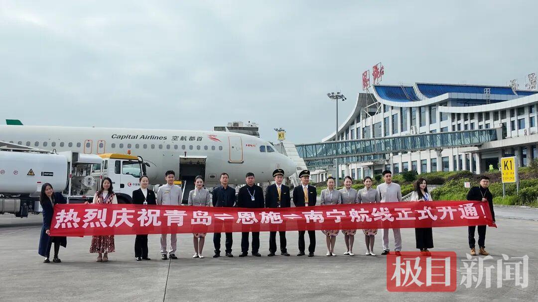10月28日上午9時44分,隨著首都航空JD5661航班平穩降落在恩施許家坪機場,青島—恩施—南寧往返航線正式通航。該航線每周二、四、六執飛,目前已開放售票。