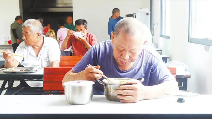 彭市鎮(zhèn)前河村幸福食堂里,老人們正在用餐。