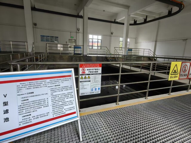 記者看到,在V型濾池里,1.2米厚的石英砂如同一個高密度篩子,把更細小的雜質篩出去。