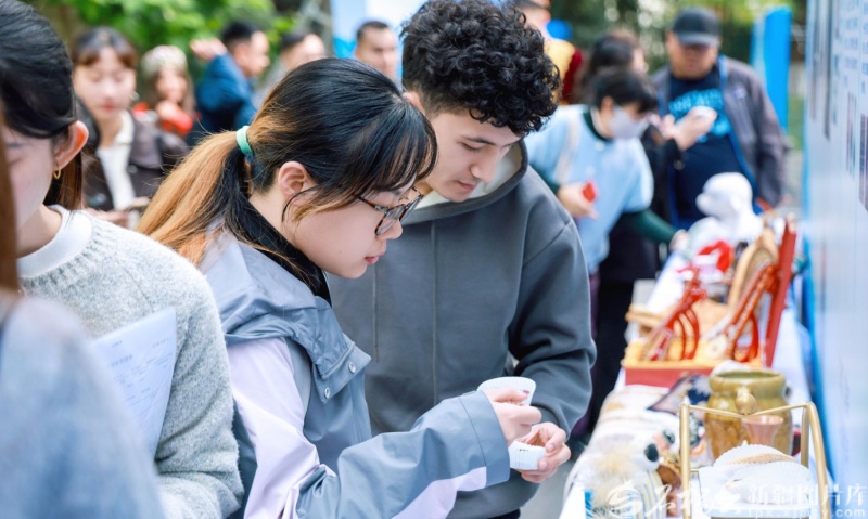 地道的新疆糕點,流光溢彩的艾德萊斯綢,栩栩如生的非遺手工藝品……一瞬間,這里變成了一個微縮的、“熱氣騰騰”的新疆文化客廳,吸引師生們從四面八方聚攏而來,一場關于千里之外的探索與共鳴,正悄然發生。