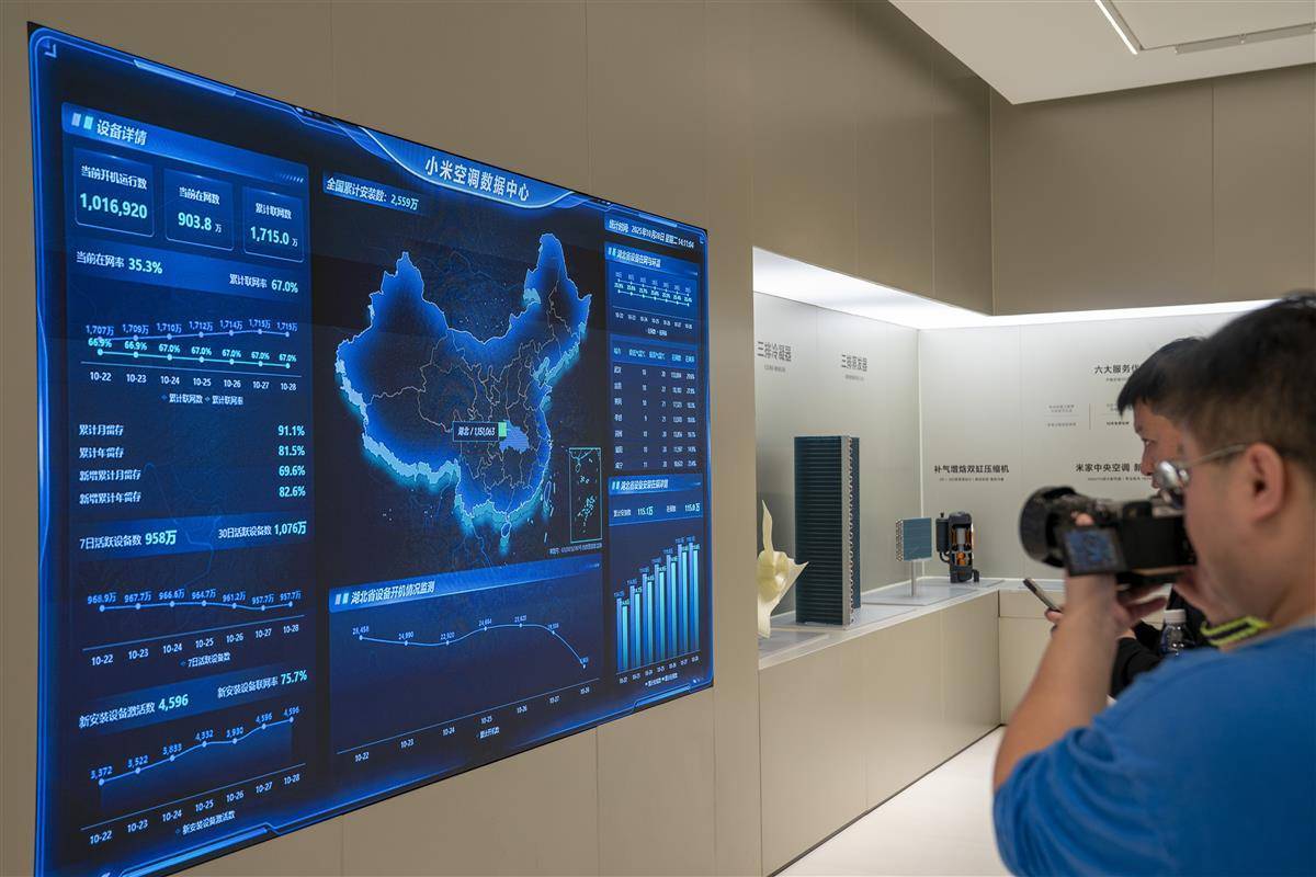 小米智能家電工廠展廳內的生產數據大屏幕。