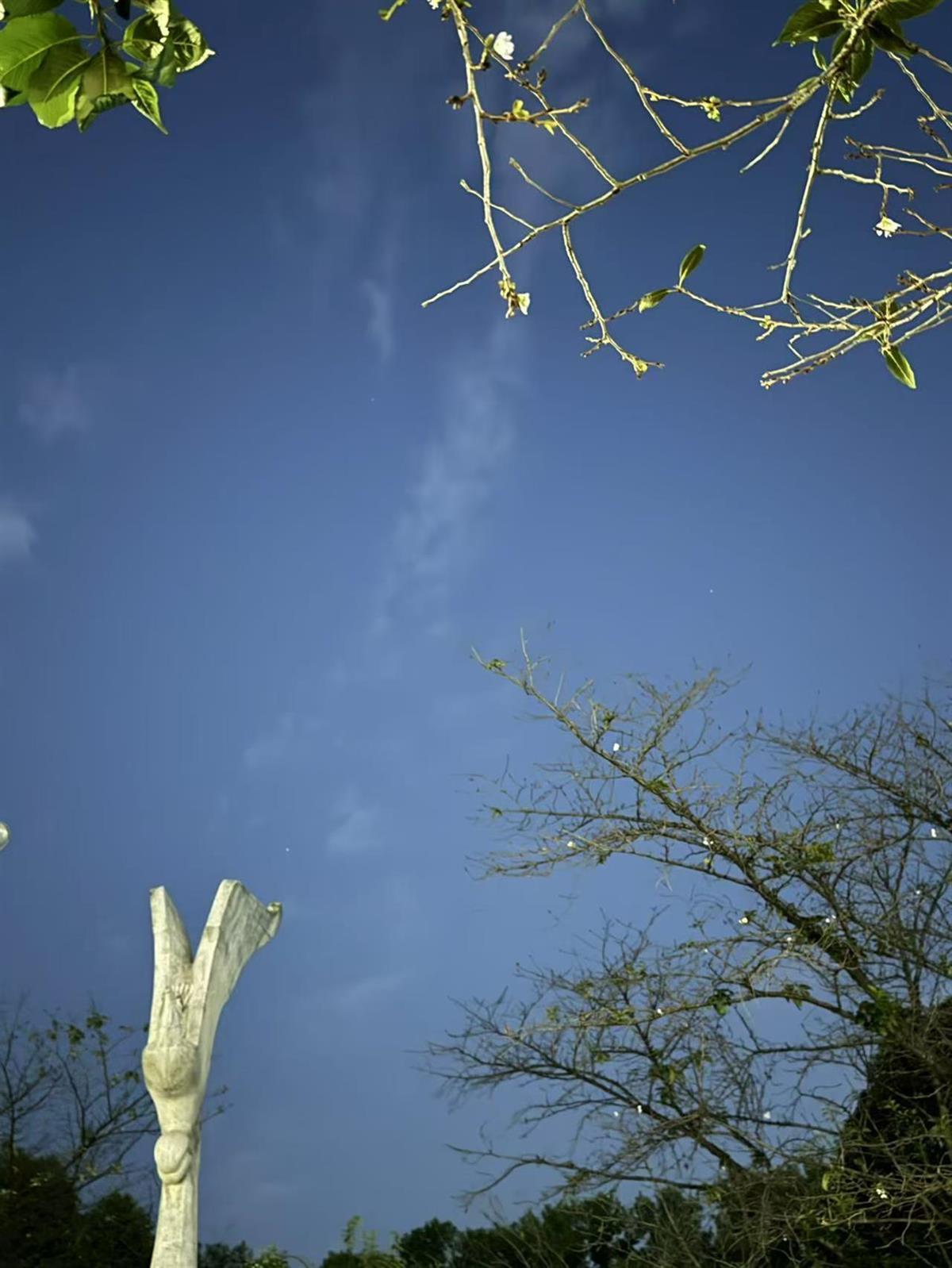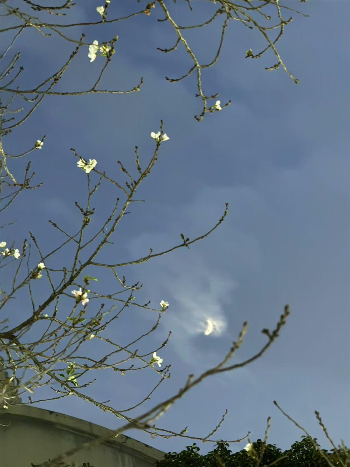 10月27日傍晚,秋月澄明,武漢大學鯤鵬廣場,白色櫻花與皎潔明月爭輝。其實,武漢大學鯤鵬廣場的櫻花9月25日就已悄然綻放,不是春日那種繁花狀態,而是三三兩兩簽個到而已。