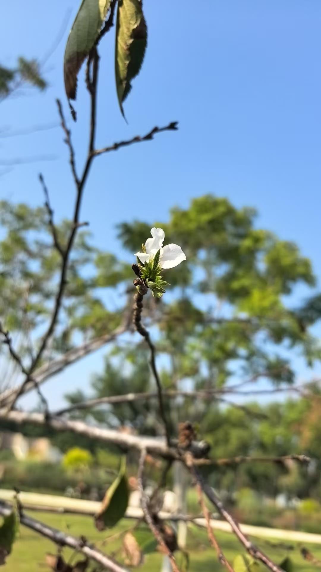 江南的常青公園內,70多棵櫻花樹,唯有一棵染井吉野櫻花樹開花了,“10月4日發現開了3朵櫻花,此后又謝了,今早又發現開了一朵,零零星星,斷斷續續的。”該園管理中心負責人彭敏介紹,往年也見過櫻花樹在秋天異常開花,應該是與氣溫、濕度等有密切關系。