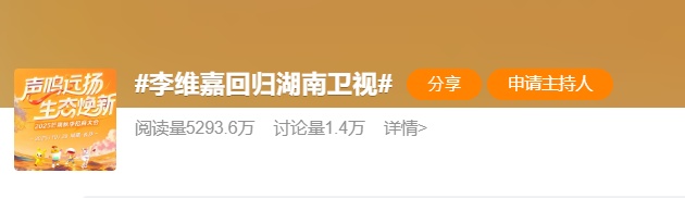 10月28日,湖南衛視官方在“2025芒果秋季招商大會”發布歡迎動態,配文“好久不見,歡迎回家”,正式確認主持人李維嘉回歸湖南衛視。
