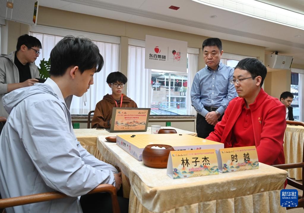 10月28日,深圳龍華隊選手時越(右)與福建刺桐棋院隊選手林子杰在比賽中。