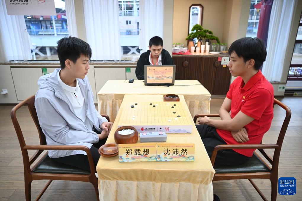 10月28日,福建刺桐棋院隊選手鄭載想(左)與深圳龍華隊選手沈沛然在比賽中。