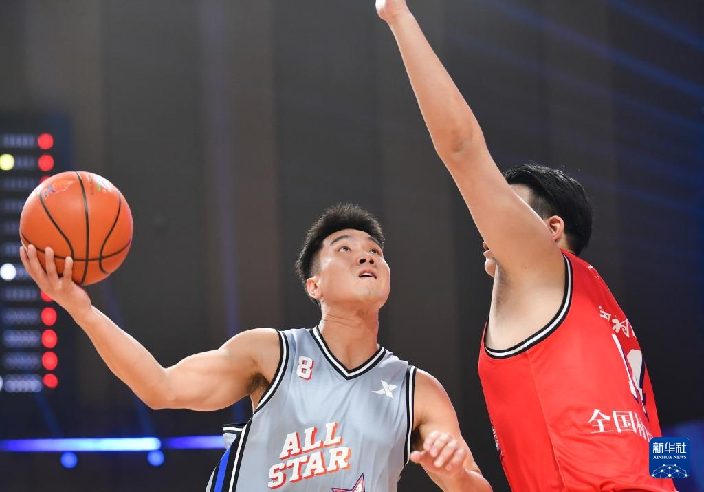10月28日,民星隊球員劉韋江(左)在比賽中進攻。