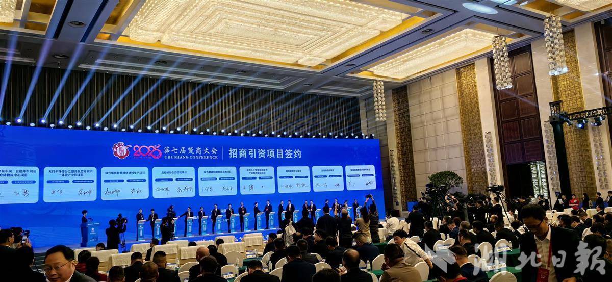 湖北日報訊(記者周壽江)10月29日上午,第七屆楚商大會舉行招商引資項目簽約儀式。本屆楚商大會期間,全國楚商與湖北省各市州共達成57個合作項目,總金額676億元。大會現場簽約項目18個,涉及光電子信息、新能源、節能環保、大健康、高端裝備、生物醫藥、算力與大數據等領域,簽約金額331.3億元。