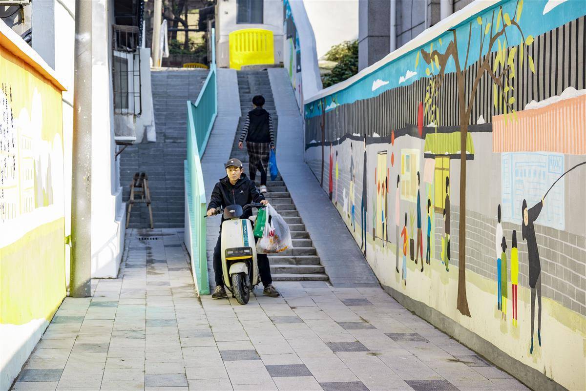 改造不僅關乎“顏值”,更直擊民生痛點。項目涉及1940戶居民、528棟房屋,整治巷道約20條。在三道街小學旁,原本的陡坡被改為三層緩坡,“現在上下省力多了!”居民徐先生連連稱贊。