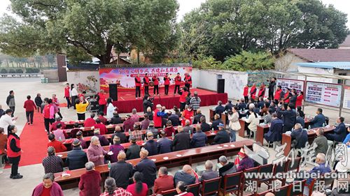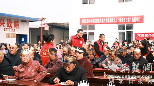 荊楚網(湖北日報網)訊(記者安從斌 通訊員王欣怡)10月29日上午,鐘祥市石牌鎮周集村村委會暖意融融,一場以“弘揚文明鄉風 共建和美周集”為主題的老人集體生日宴暨重陽節文藝聯歡活動熱鬧舉行,為48名75-79歲老人慶生,并邀請全村60歲及以上200余位老人共度佳節。