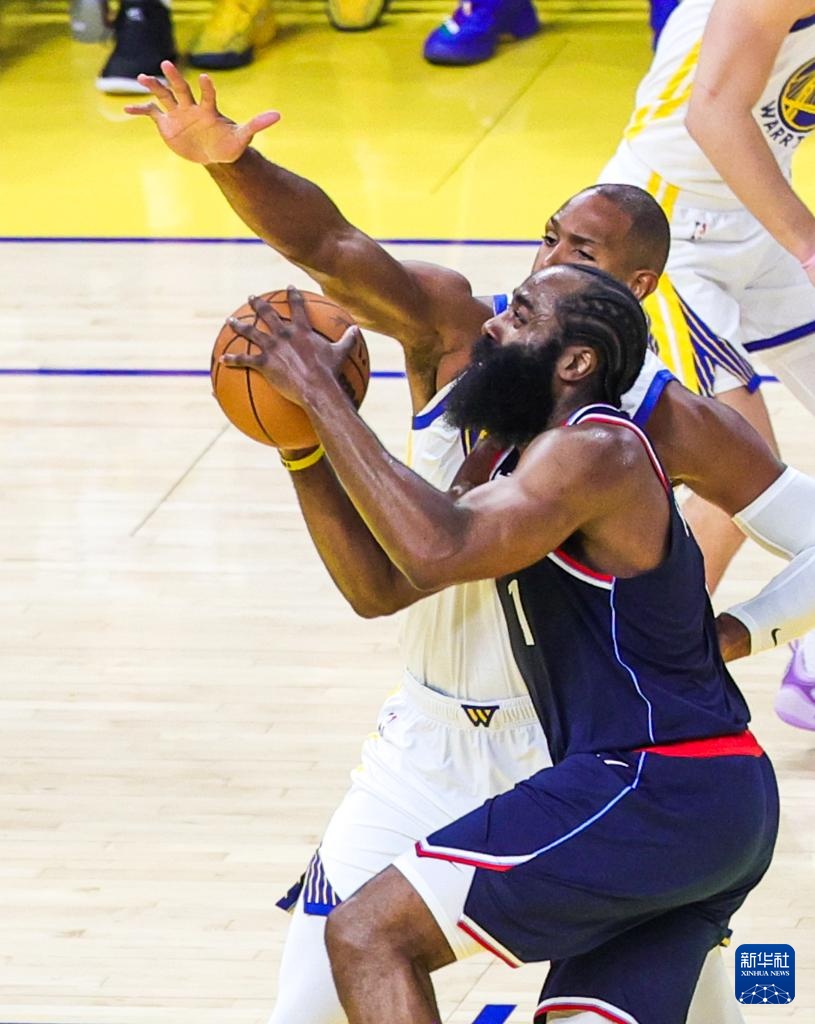 10月28日,快船隊球員哈登(前)在比賽中進(jìn)攻。
