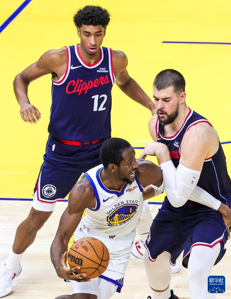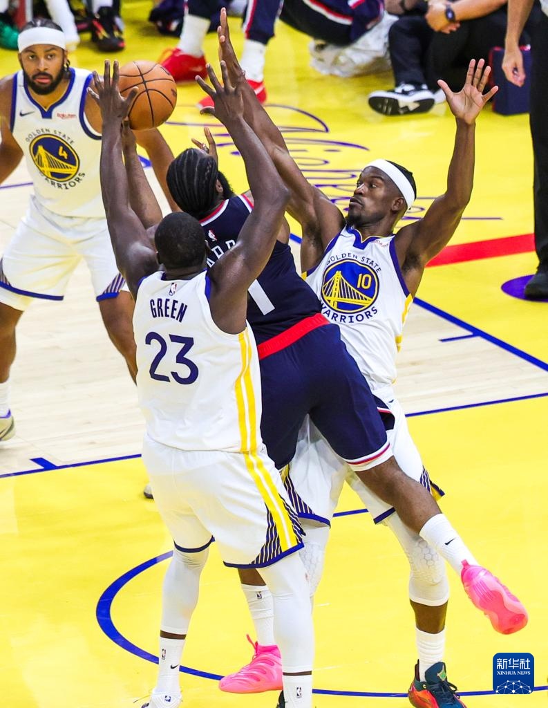 10月28日,勇士隊球員庫明加(中)在比賽中帶球突破。