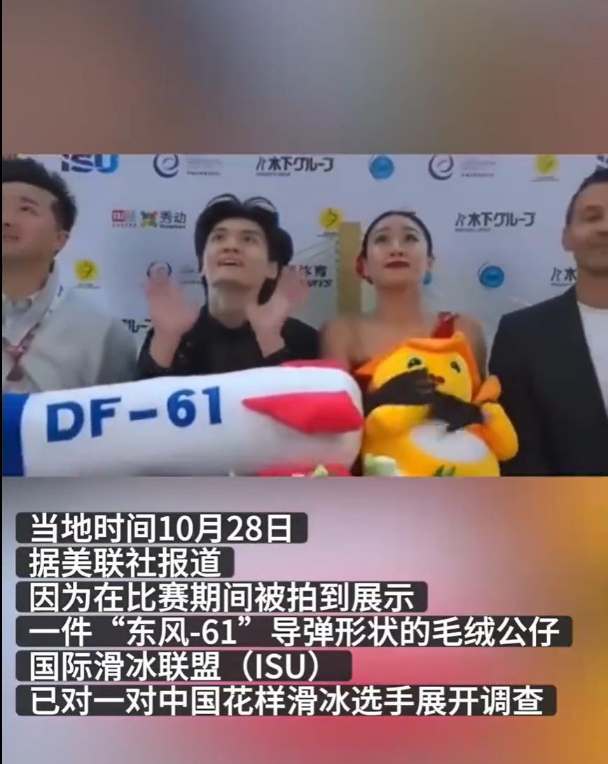 當地時間10月28日,據美聯社報道,國際滑聯(ISU)已就中國杯花樣滑冰大獎賽期間出現的“導彈造型玩偶”事件展開調查。