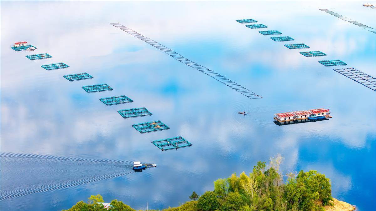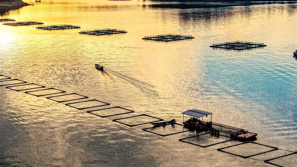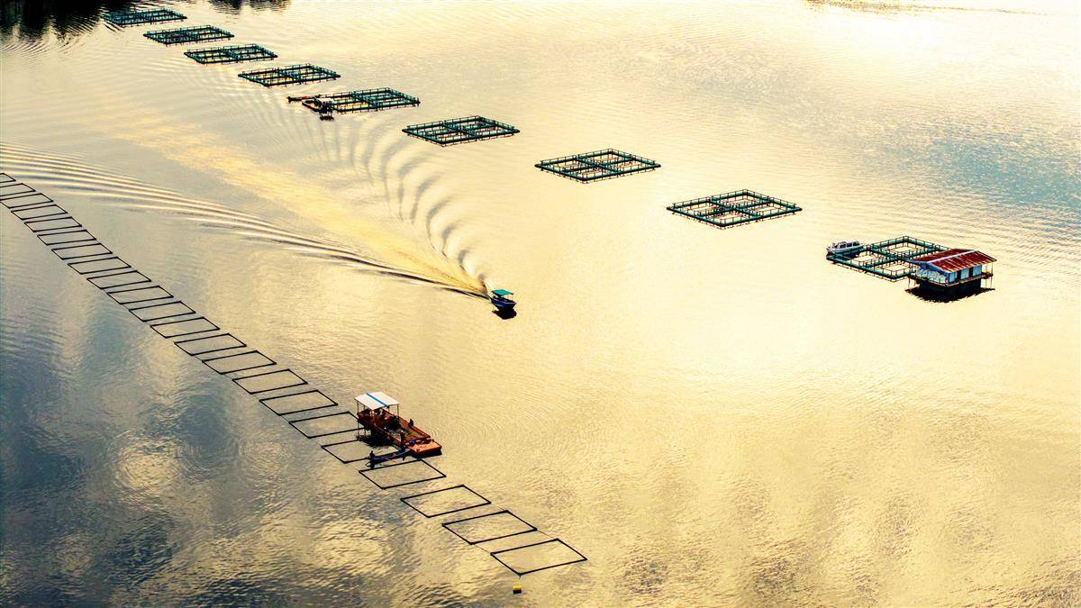 10月24日,在黃岡市白蓮河水庫水域,一個個水產(chǎn)養(yǎng)殖網(wǎng)箱整齊排布,養(yǎng)殖戶駕船在網(wǎng)箱區(qū)域忙碌,呈現(xiàn)出一幅生態(tài)養(yǎng)殖與碧水藍(lán)天相融的現(xiàn)代農(nóng)業(yè)圖景。近年來,白蓮河水庫深入踐行“綠水青山就是金山銀山”理念,立足保護(hù)生態(tài)資源,人放天養(yǎng)的原則,科學(xué)合理放養(yǎng)凈化水質(zhì)的鰱鳙等特色水產(chǎn)生態(tài)養(yǎng)殖,推動環(huán)境提升、產(chǎn)業(yè)增效、農(nóng)民增收,走出了一條生態(tài)與經(jīng)濟(jì)協(xié)同發(fā)展的綠色之路。(視界網(wǎng) 王江 攝)