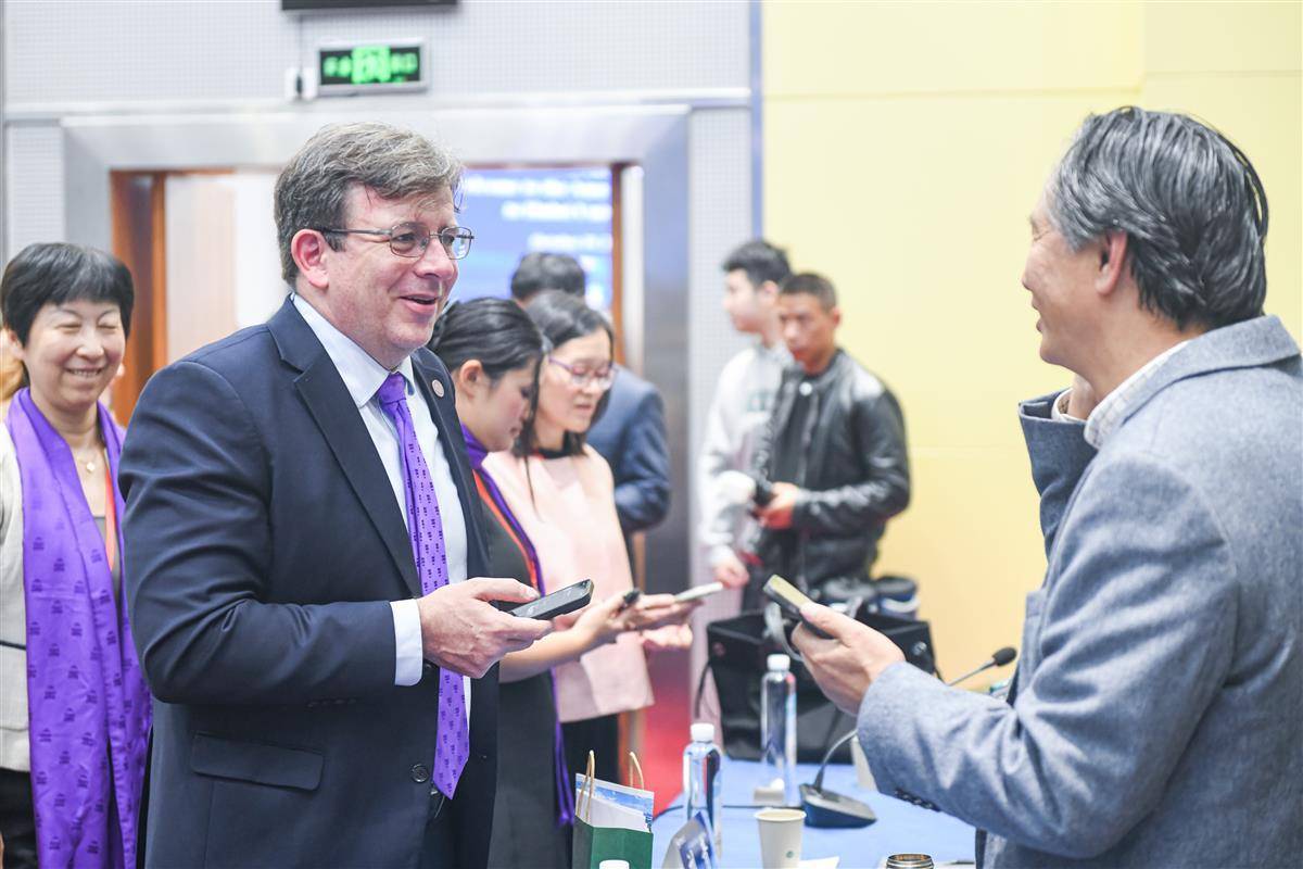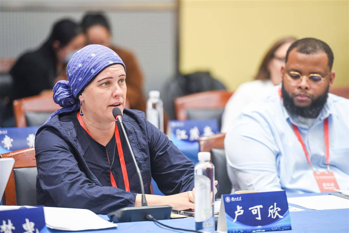 會后,美國代表與湖北大學長江文化研究院院長鄭曉云(右)面對面交流。