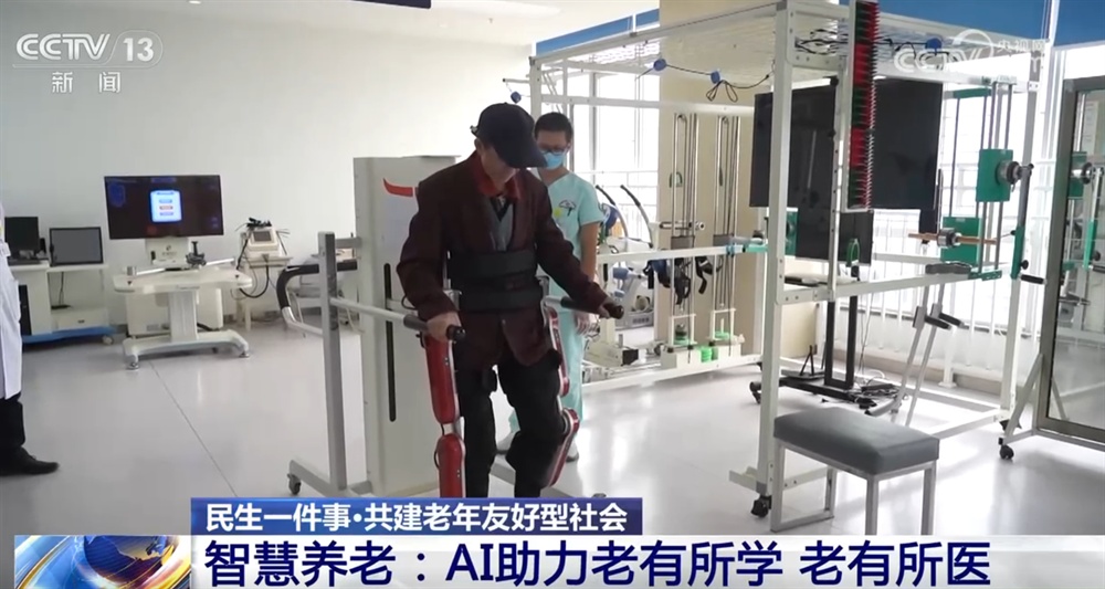 科技不僅賦能老年教育,也在助力老年健康。在成都市第八人民醫院,75歲的謝先坤老人正借助下肢外骨骼機器人開展恢復訓練,經過兩個多月的練習,他已經從臥床不起恢復到可以拄著拐杖獨立行走。