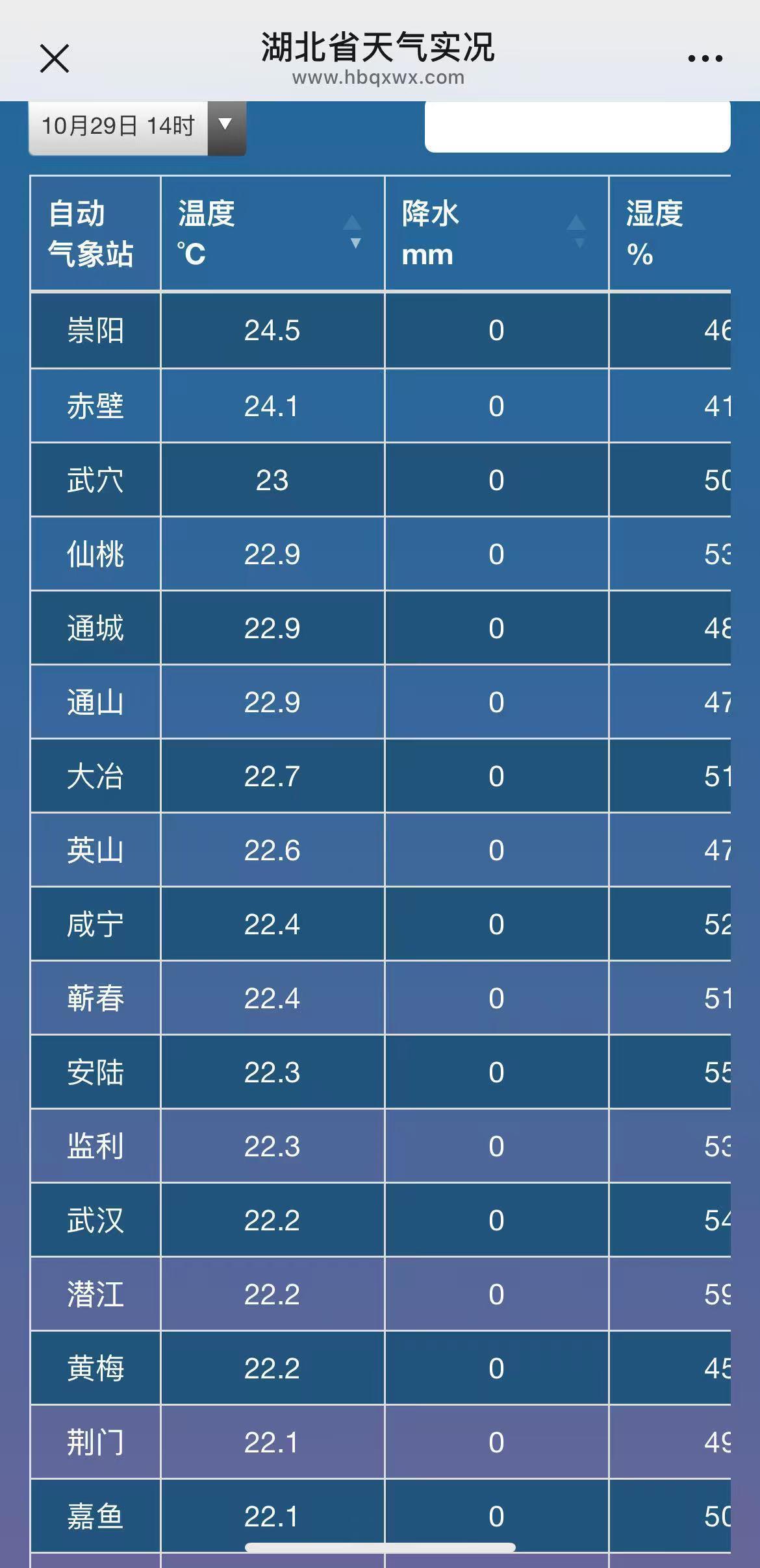 全省來看,下午2時許,除十堰、恩施、宜昌、襄陽等鄂西地區在17-19℃,中東部地區均在20℃以上,尤其是赤壁、崇陽已達24℃。