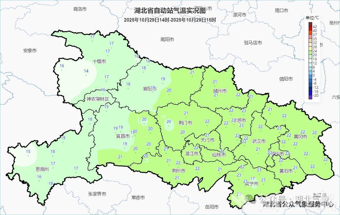 氣象專家介紹,由于近期天氣靜穩(wěn),大氣擴(kuò)散條件一般。29 日省內(nèi)多地遭遇局地濃霧,十堰、恩施、宜昌、隨州、荊門、荊州的16個鄉(xiāng)鎮(zhèn)出現(xiàn)濃霧。白天全省自西向東逐漸漲云,十堰西部地區(qū)率先出現(xiàn)小雨,氣溫較28日明顯下滑,西部多地降幅達(dá)3至5℃,保康降溫幅度最高達(dá)6.4℃。下午15時監(jiān)測顯示,西部氣溫15至20℃,東部21至23℃,體感較前日偏涼。預(yù)計(jì)未來三天氣溫整體變幅不大,30日和31日最高氣溫普遍在20℃以上,11月1日恩施地區(qū)有所下滑。