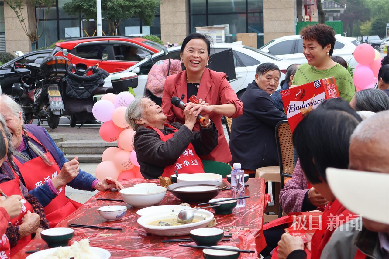 10月27日,浙江杭州三墩鎮(zhèn)邵師傅牛雜煲店門外擺起了長桌,席上宴請的都是年逾六旬的老人。在重陽節(jié)到來前免費宴請居住在附近的老人,老板娘徐慧英已堅持了10年。10月29日,徐慧英告訴極目新聞記者,今年有106位老人前來吃席,今年的菜式包括酸菜魚、三鮮、排骨燉蘿卜等。
