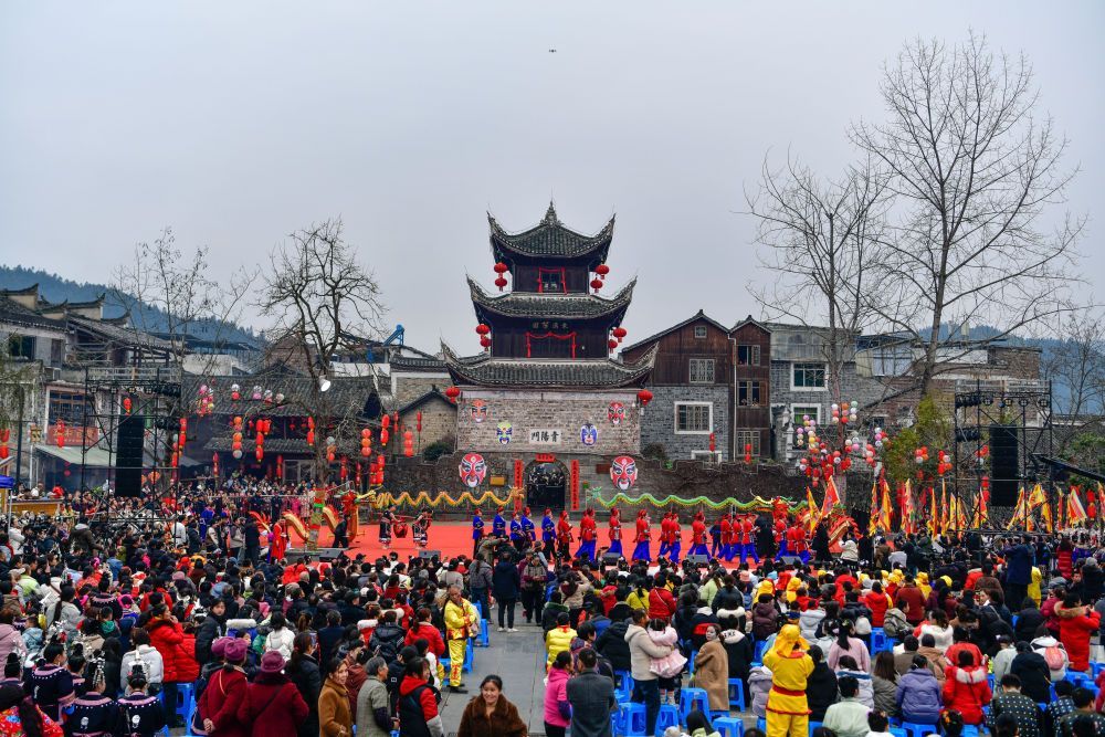 這是2月11日拍攝的貴州錦屏隆里“村晚遇元宵·來隆里玩花臉龍”活動現(xiàn)場。新華社記者 楊文斌 攝