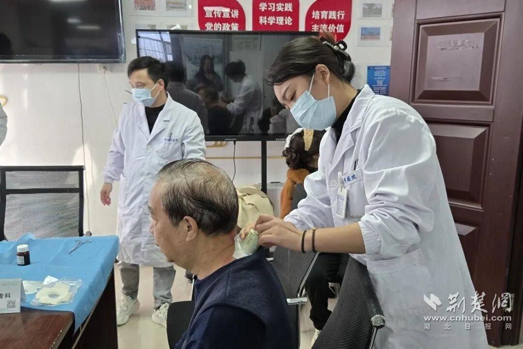 在珞獅路社區活動現場,醫護人員們耐心解答各類咨詢,精準對接老人健康需求,涵蓋康復醫學、老年醫學、中醫診療、皮膚健康四大核心服務,為大家提供針對性的治療方案和健康指導。